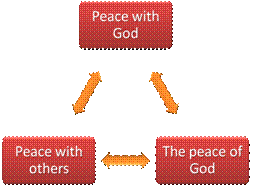 But one of our problems is that we treat peace like it is a commodity to be hoarded. We are very selfish about our peace. Let me explain what I mean. Last week I mentioned that there are two basic types of peace in the Bible—peace with God, which is our salvation and can never be changed, and the peace of God, which is the opposite of anxiety and can change all of the time. There is actually a third Biblical category I did not mention—peace with others. The foundation for having peace with others is having peace with God. When we had lunch with Lincoln Brunner when he was here two weeks ago, he told the story about these two South American gangbangers who each had a blood oath to kill the other man. If ever they saw one another, they swore to kill him. One day they saw each other in the airport and since one man had received Christ and found peace with God, he decided to approach the other man. Maybe he figured he would not try to kill him in a busy airport. Not only did he not try to stick a knife in his belly, the other man embraced him with a smile, for he too had found peace with God through Christ. Peace between these two men would have been absolutely impossible if they had not both found peace with God.